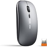INPHIC Mouse wireless ricaricabile, ultra sottile 2.4G silenzioso mouse senza fili ottico 1600 DPI con ricevitore USB per laptop, MacBook, PC, Windows, ufficio, carica batteria visibile, grigio