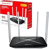Mercusys MB135-4G Router WiFi con Sim, 4G LTE Cat4 AC1200Mbps, 4 Antenne Ad Alto Guadagno, 1 Porta LAN/WAN + 3 Porte LAN, OpenVPN, PPTP Server, WAN Backup, Parental/LED Control, SMS, APP, Plug & Play