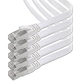 1aTTack.de Cavo di rete piatto Cat.7 Gigabit Ethernet Lan (RJ45), 10Gbit/s, compatibile con Cat.5 –Cat.5e – Cat.6 Bianco / 5 pz 3 m