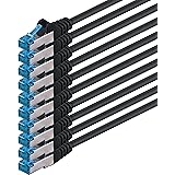 1aTTack.de 1,0m - nero - 10 pezzi - CAT.7 Cavi di Rete (Set) CAT7-10000 MBit/s S-FTP doppia schermatura PIMF 600MHz 4x2xAWG26 / 7 CU rame non contiene alogeni compatibile con CAT5e CAT6 CAT 6a Cat8